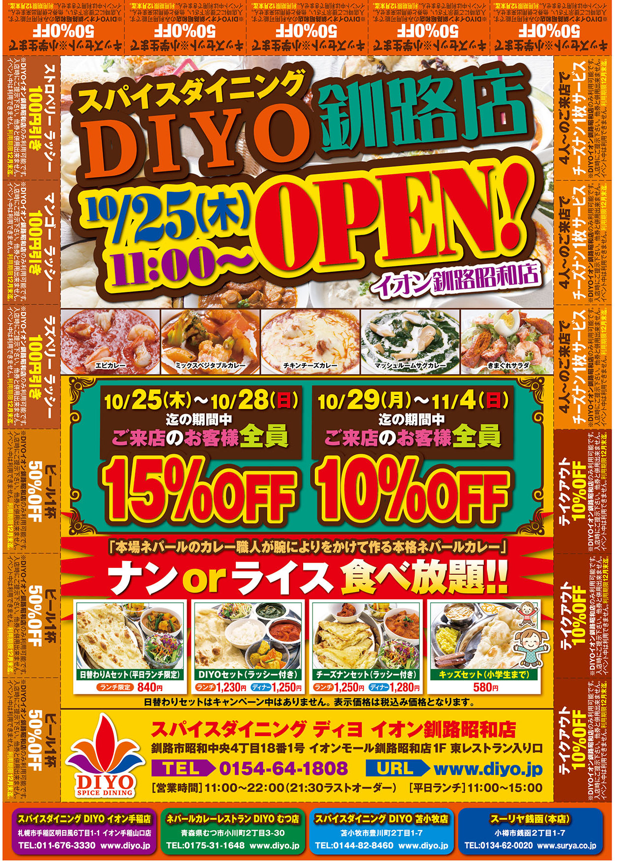 いよいよ25日 AEONモール釧路昭和1階に、本場ネパールカレースパイスダイニングDIYO〔ディヨ〕オープン致します。